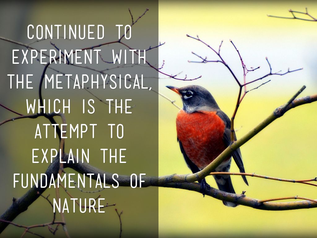 continued to experiment with the metaphysical, which is the attempt to explain the fundamentals of nature