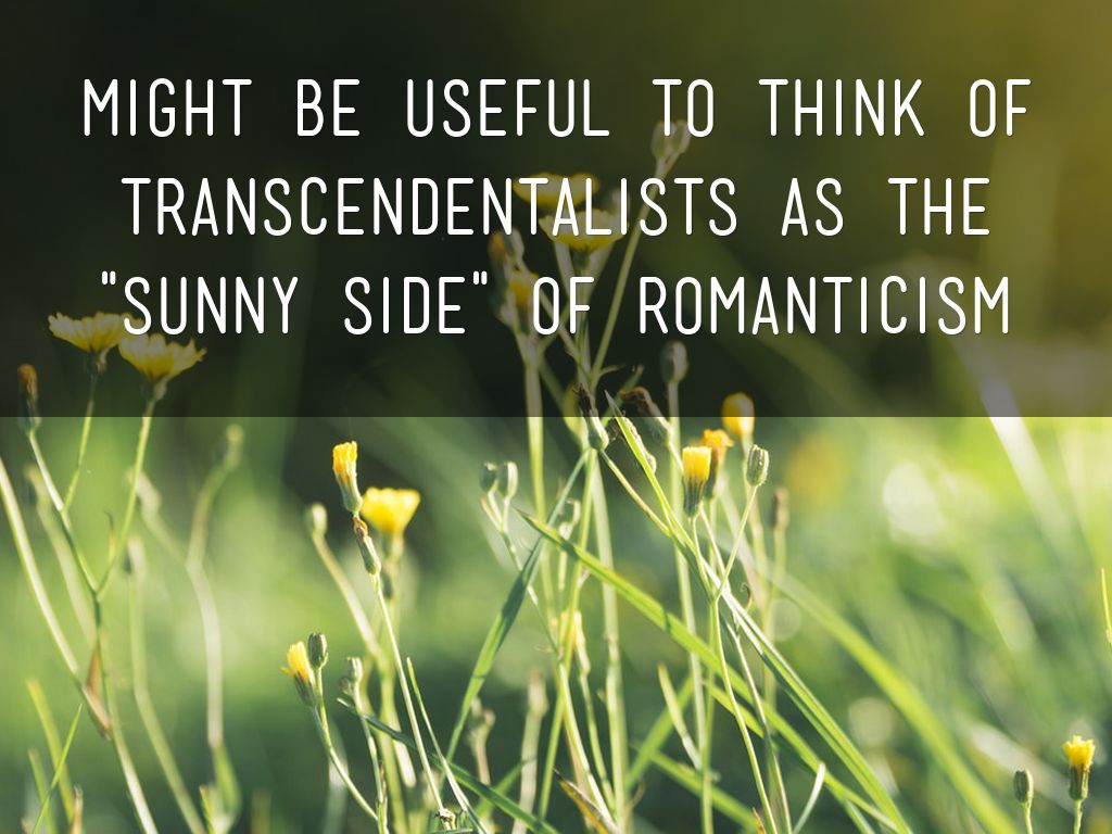 might be useful to think of Transcendentalists as the "sunny side" of romanticism