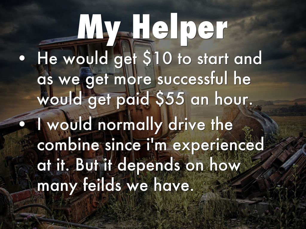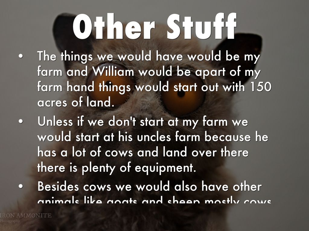 The things we would have would be my farm and William would be apart of my farm hand things would start out with 150 acres of land.