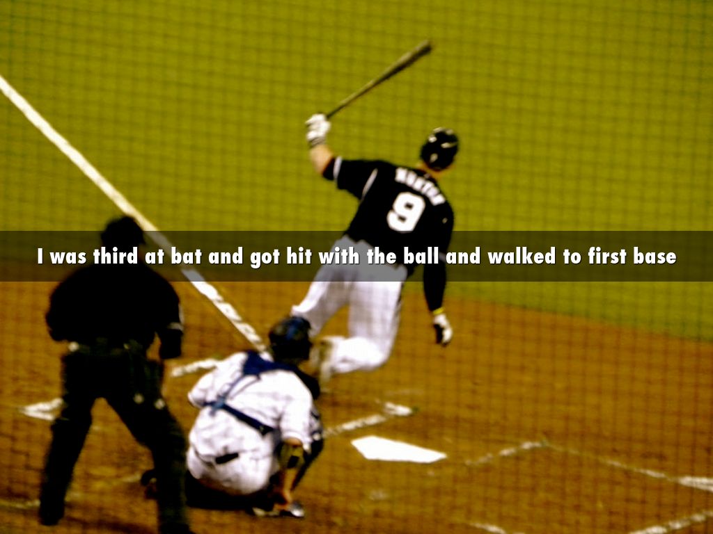 I was third at bat and got hit with the ball and walked to first base