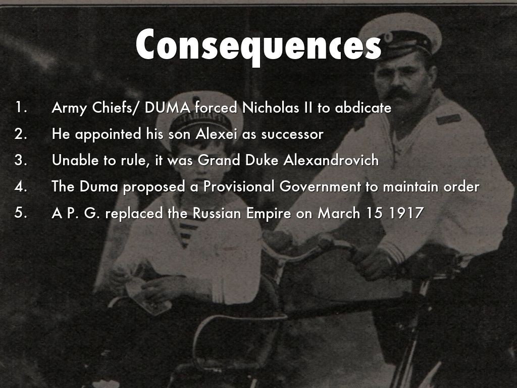 Army Chiefs/ DUMA forced Nicholas II to abdicate