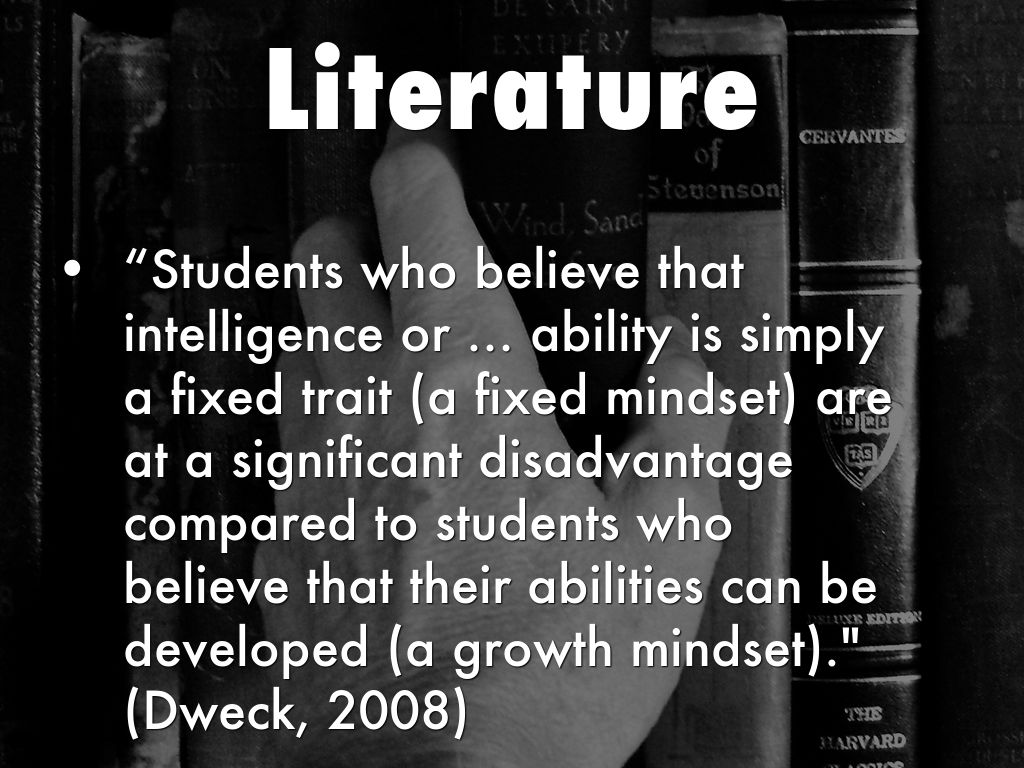 “Students who believe that intelligence or … ability is simply a fixed trait (a fixed mindset) are at a significant disadvantage compared to students who believe that their abilities can be developed (a growth mindset)." (Dweck, 2008)