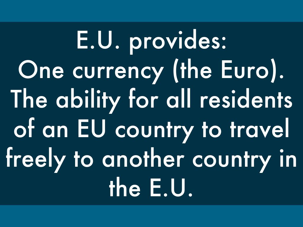 The ability for all residents of an EU country to travel freely to another country in the E.U.