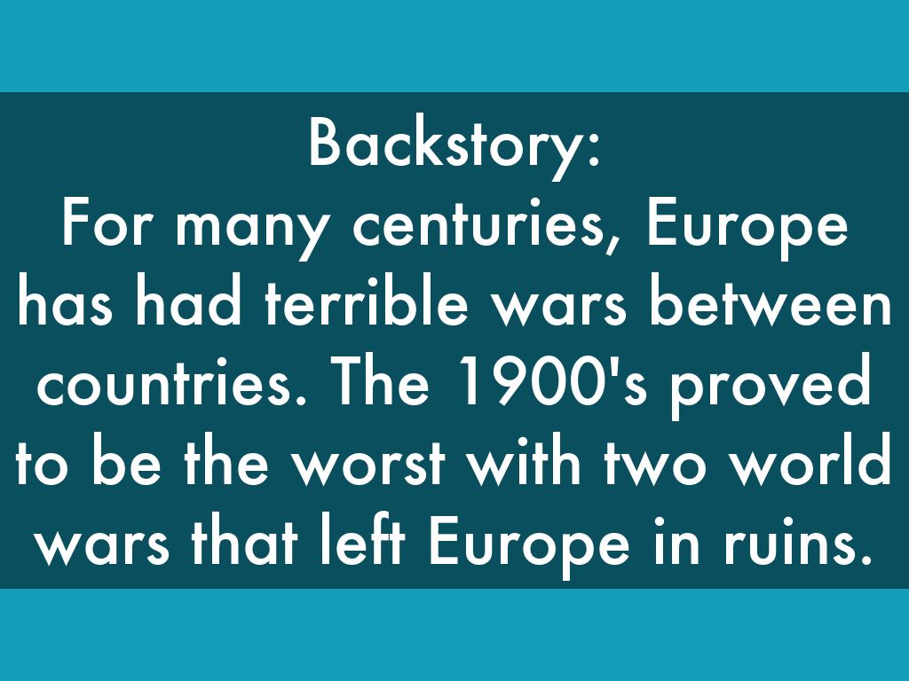 For many centuries, Europe has had terrible wars between countries. The 1900's proved to be the worst with two world wars that left Europe in ruins.