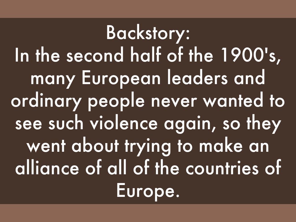 In the second half of the 1900's, many European leaders and ordinary people never wanted to see such violence again, so they went about trying to make an alliance of all of the countries of Europe.