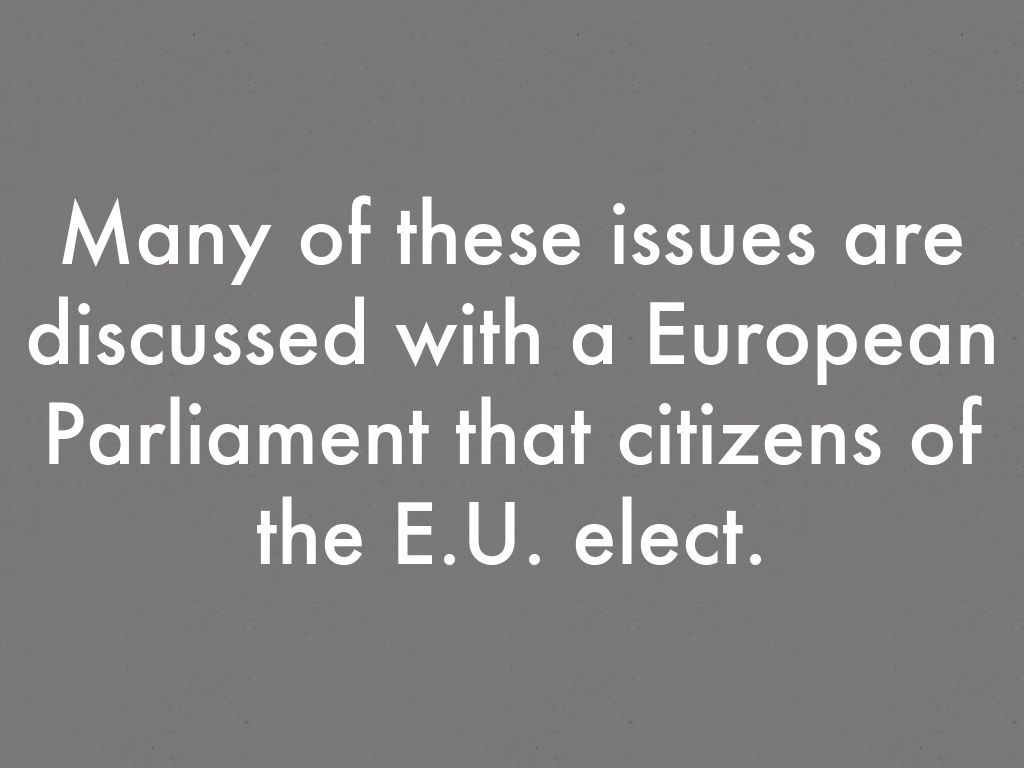 Many of these issues are discussed with a European Parliament that citizens of the E.U. elect.