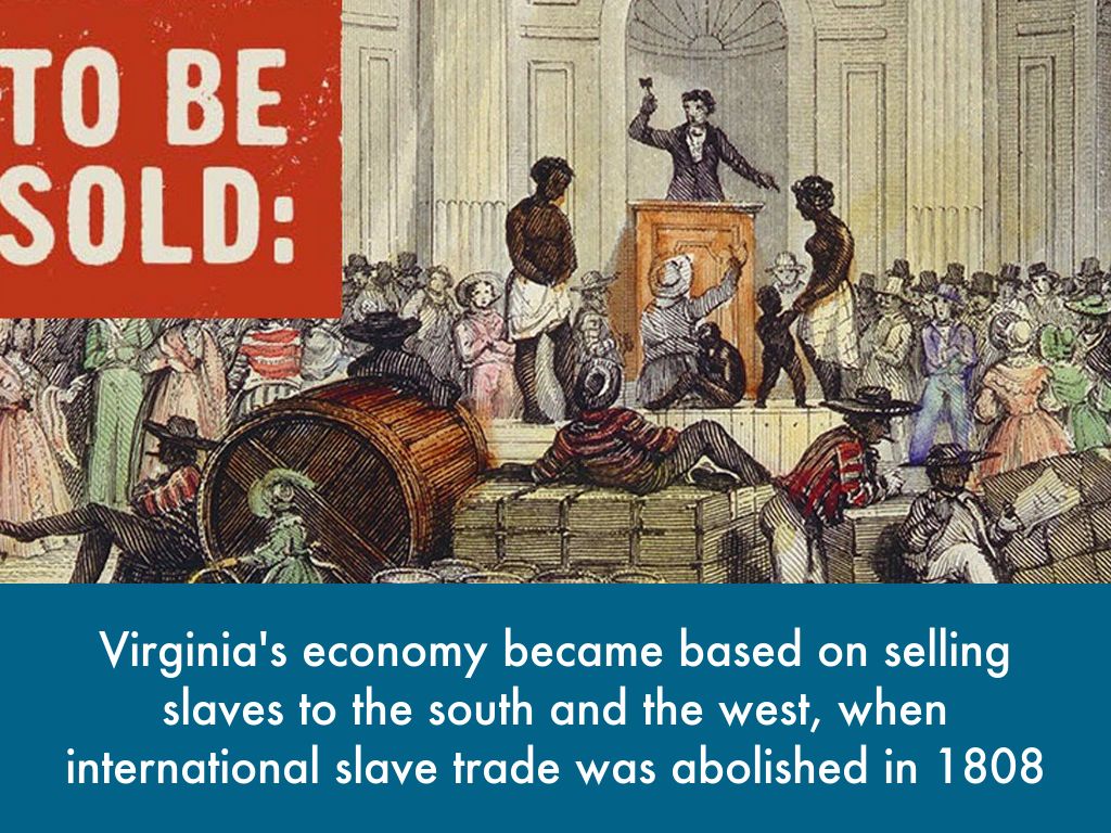 Virginia's economy became based on selling slaves to the south and the west, when international slave trade was abolished in 1808