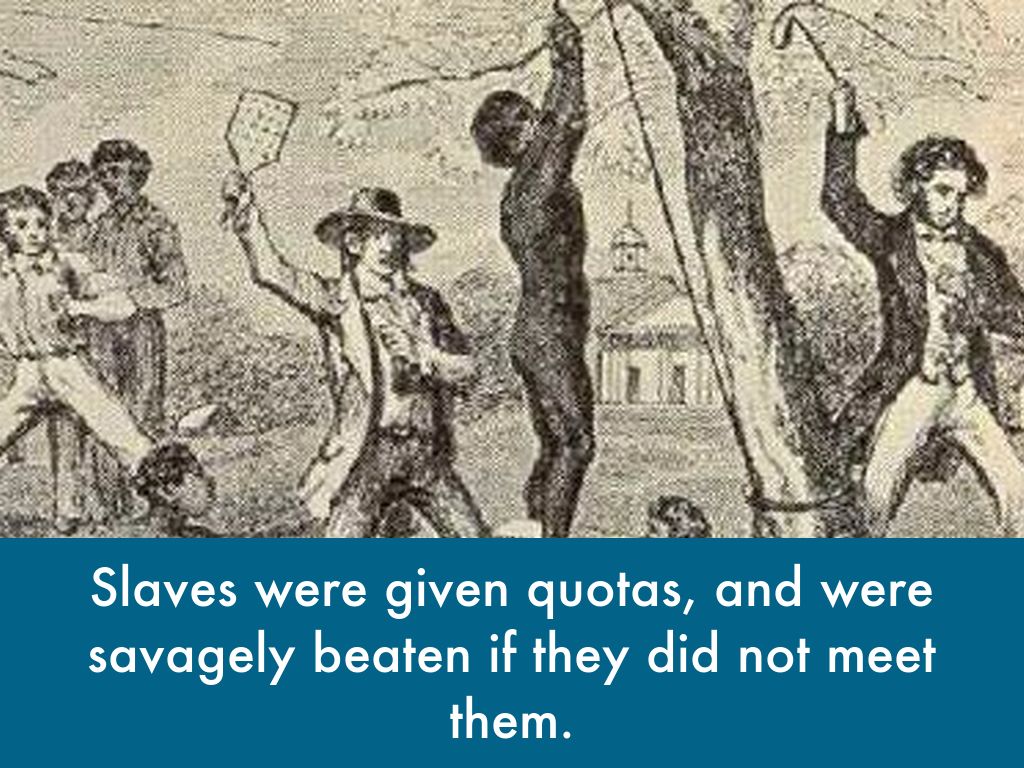 Slaves were given quotas, and were savagely beaten if they did not meet them.