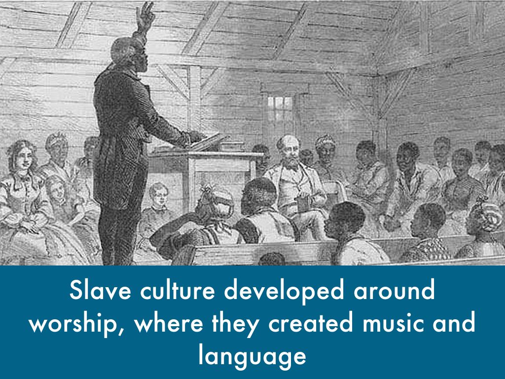 Slaves culture developed around the extended family, since one could be sold off at any time