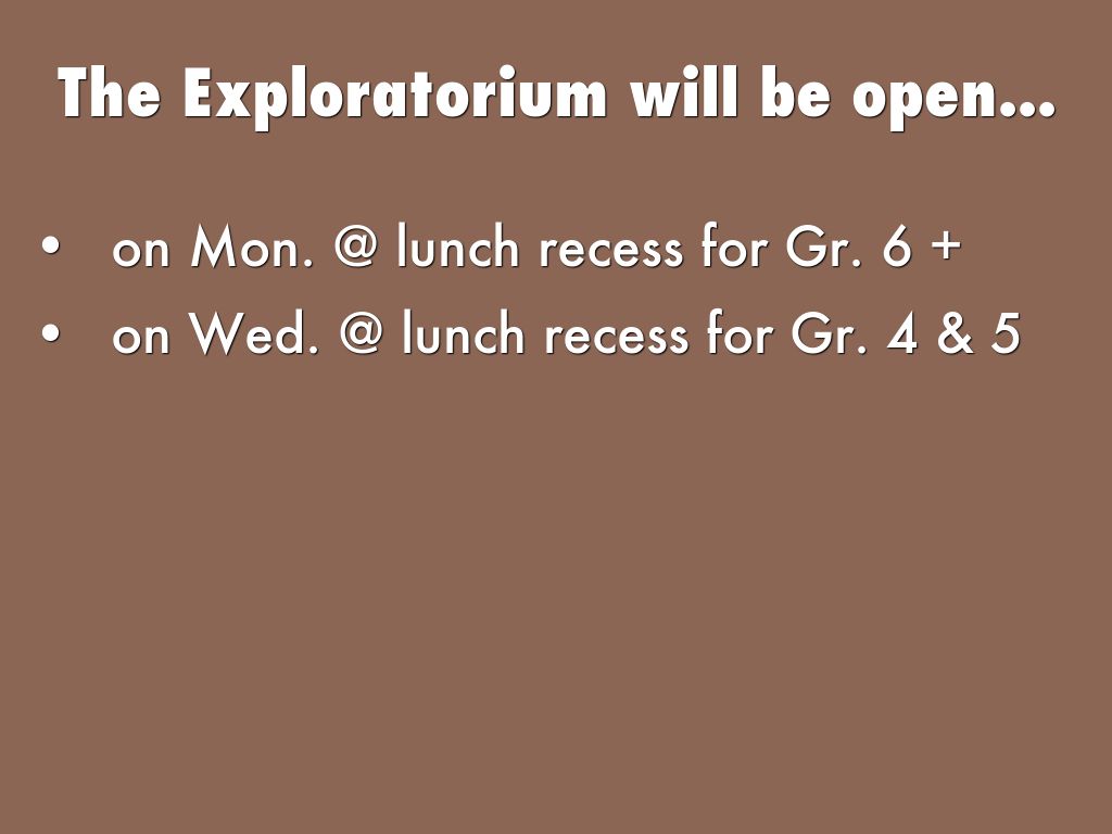 The Exploratorium will be open...