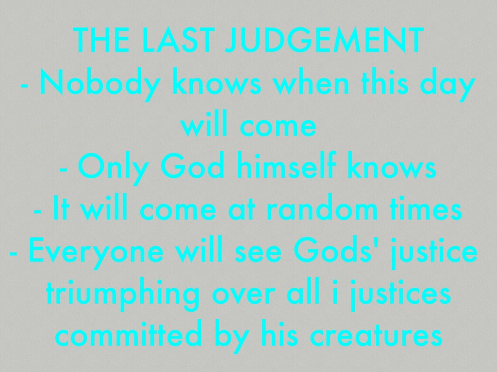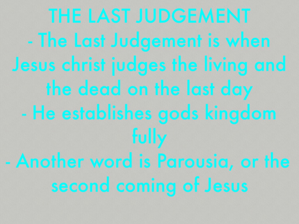 - The Last Judgement is when Jesus christ judges the living and the dead on the last day