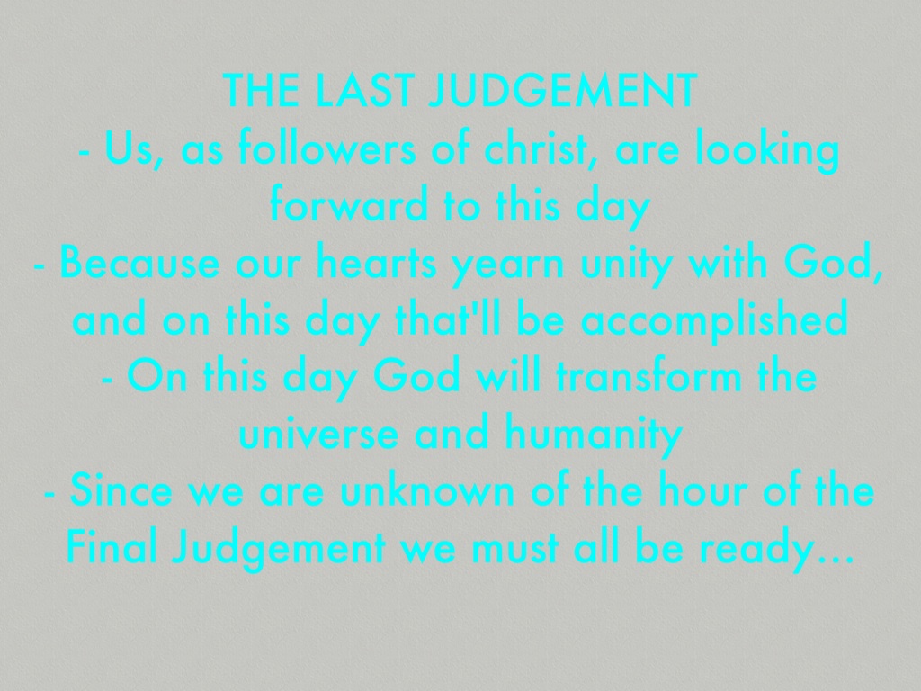 - Since we are unknown of the hour of the Final Judgement we must all be ready