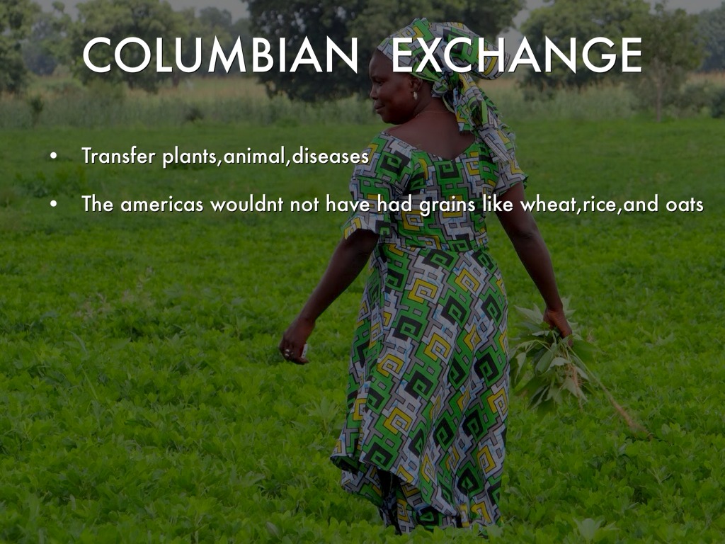 The americas wouldnt not have had grains like wheat,rice,and oats