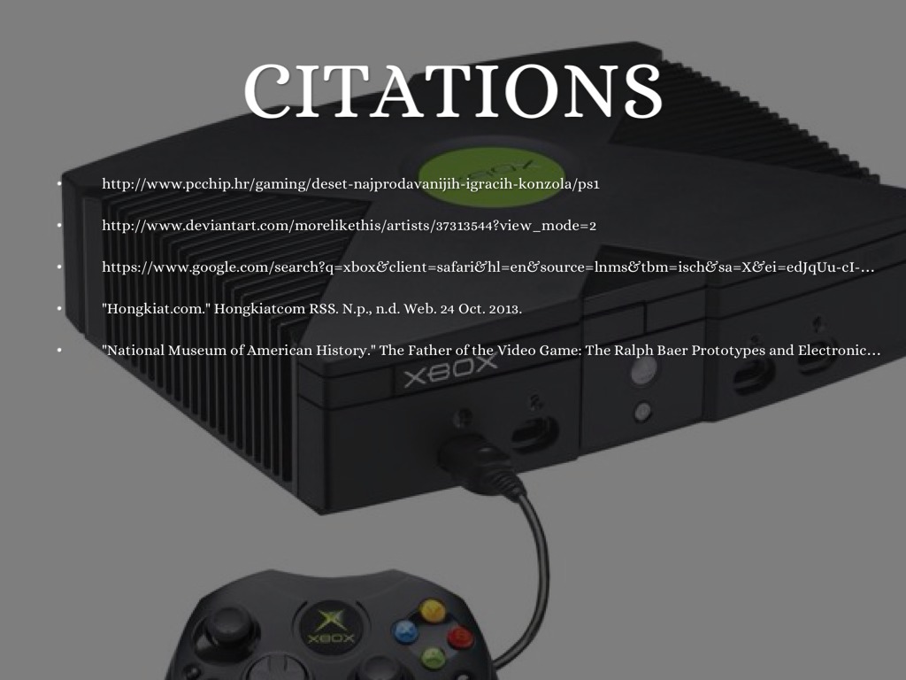 "National Museum of American History." The Father of the Video Game: The Ralph Baer Prototypes and Electronic Games. N.p., n.d. Web. 24 Oct. 2013.