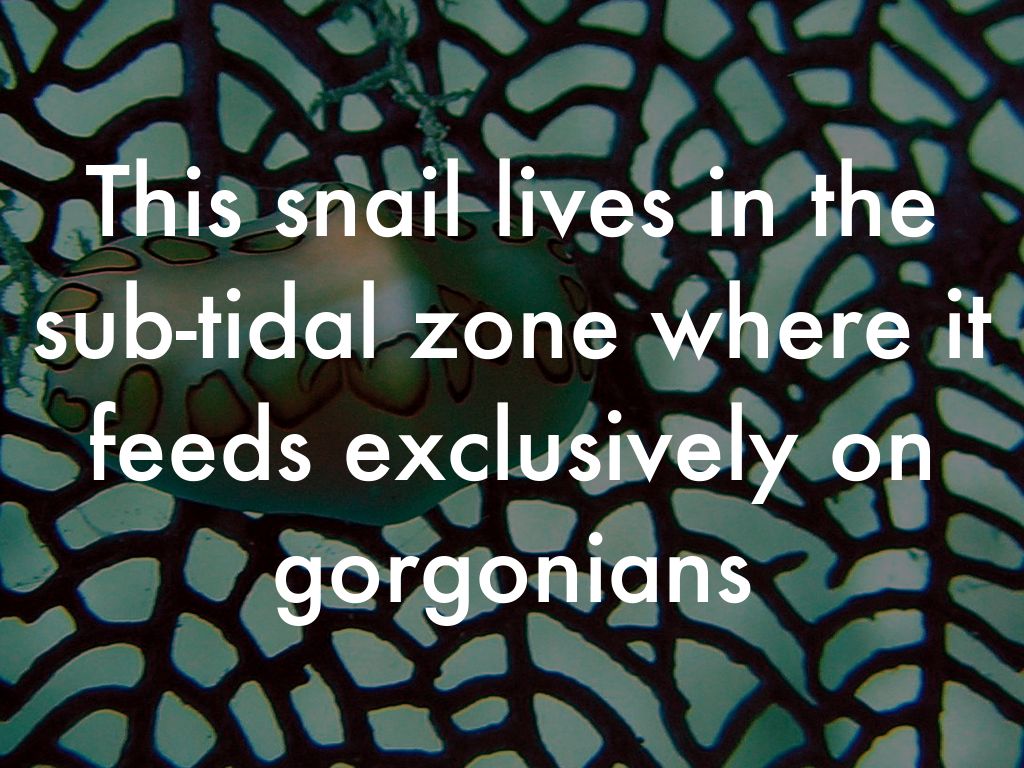 This snail lives in the sub-tidal zone where it feeds exclusively on gorgonians
