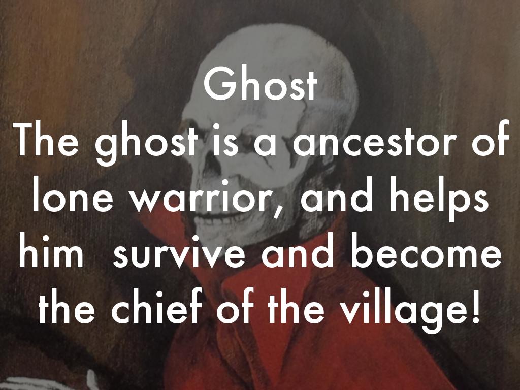 The ghost is a ancestor of lone warrior, and helps him survive and become the chief of the village!