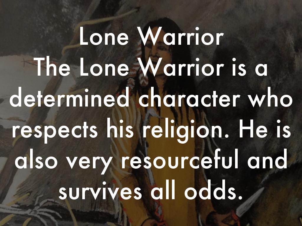 The Lone Warrior is a determined character who respects his religion. He is also very resourceful and survives all odds.