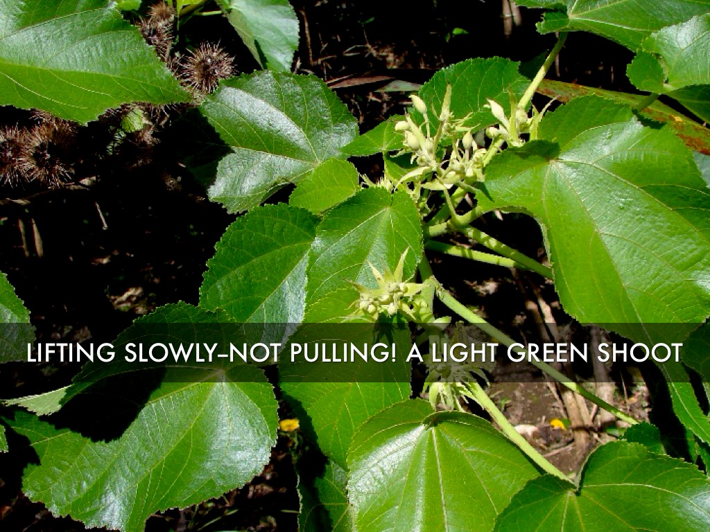 LIFTING SLOWLY--NOT PULLING! A LIGHT GREEN SHOOT