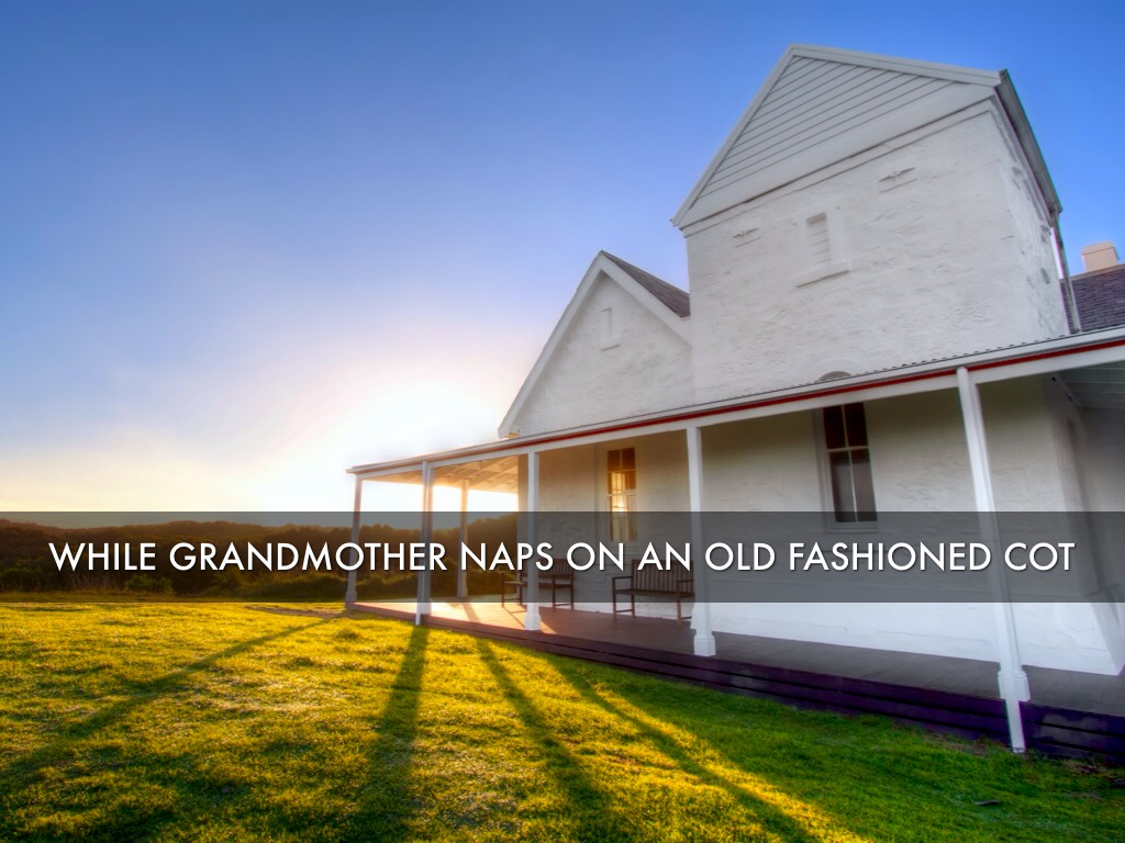 While grandmother naps on an old fashioned cot