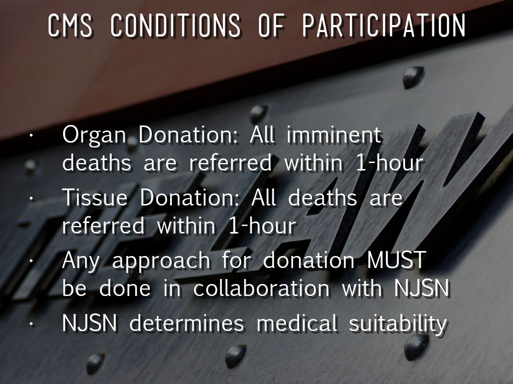 Other details: located in New Providence, NJ – covering the 14 northern counties of NJ – each state has a designated OPO and some states have more then one (i.e. NJSN and Gift of Life)