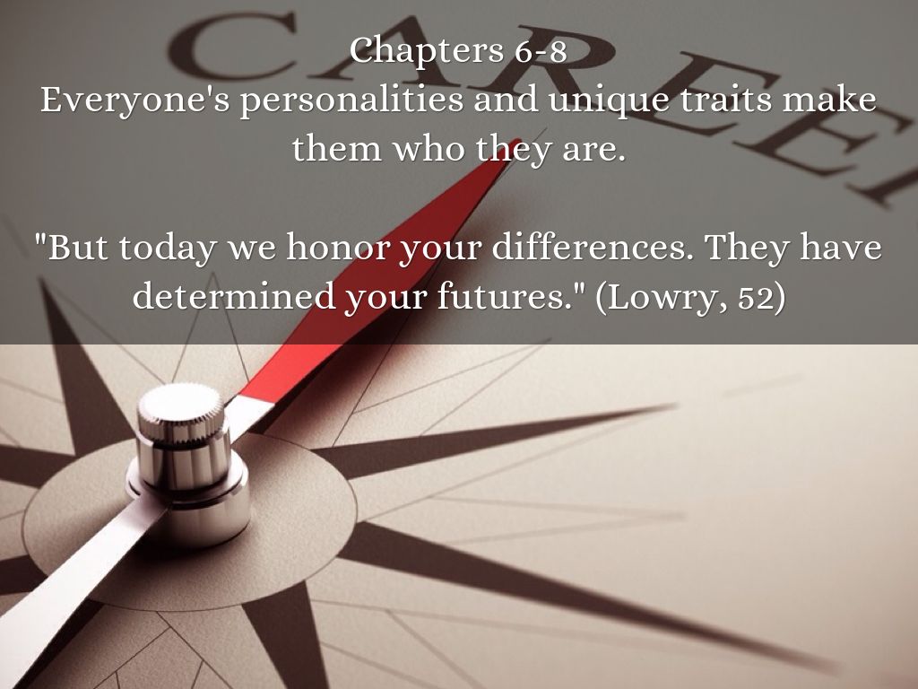 "But today we honor your differences. They have determined your futures." (Lowry, 52)