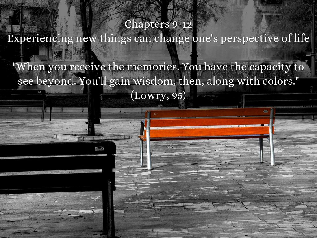 "When you receive the memories. You have the capacity to see beyond. You'll gain wisdom, then, along with colors." (Lowry, 95)