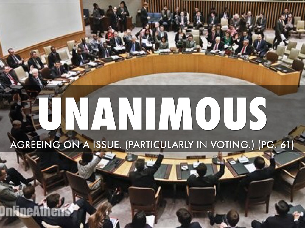 AGREEING ON A ISSUE. (PARTICULARLY IN VOTING.) (PG. 61)