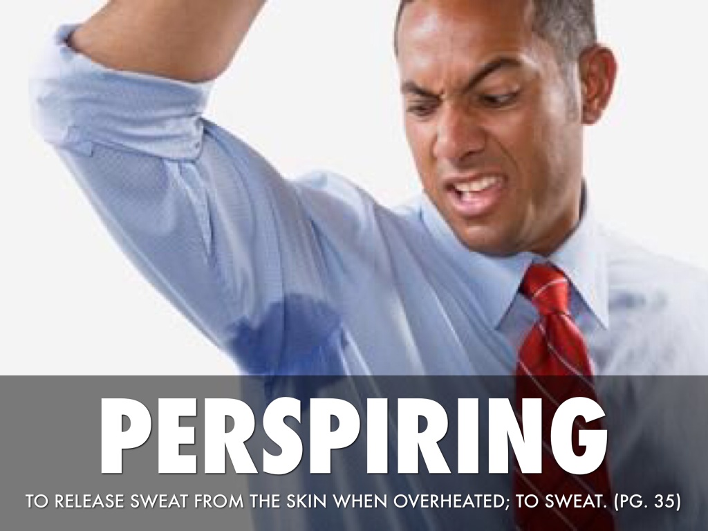TO RELEASE SWEAT FROM THE SKIN WHEN OVERHEATED; TO SWEAT. (PG. 35)