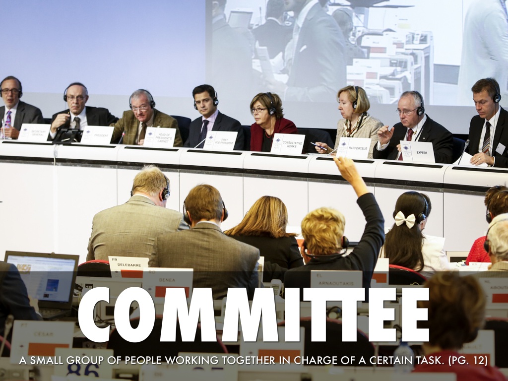 A SMALL GROUP OF PEOPLE WORKING TOGETHER IN CHARGE OF A CERTAIN TASK. (PG. 12)