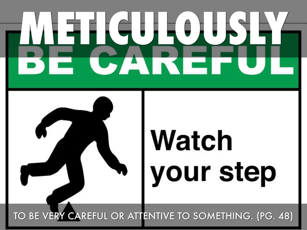 TO BE VERY CAREFUL OR ATTENTIVE TO SOMETHING. (PG. 48)