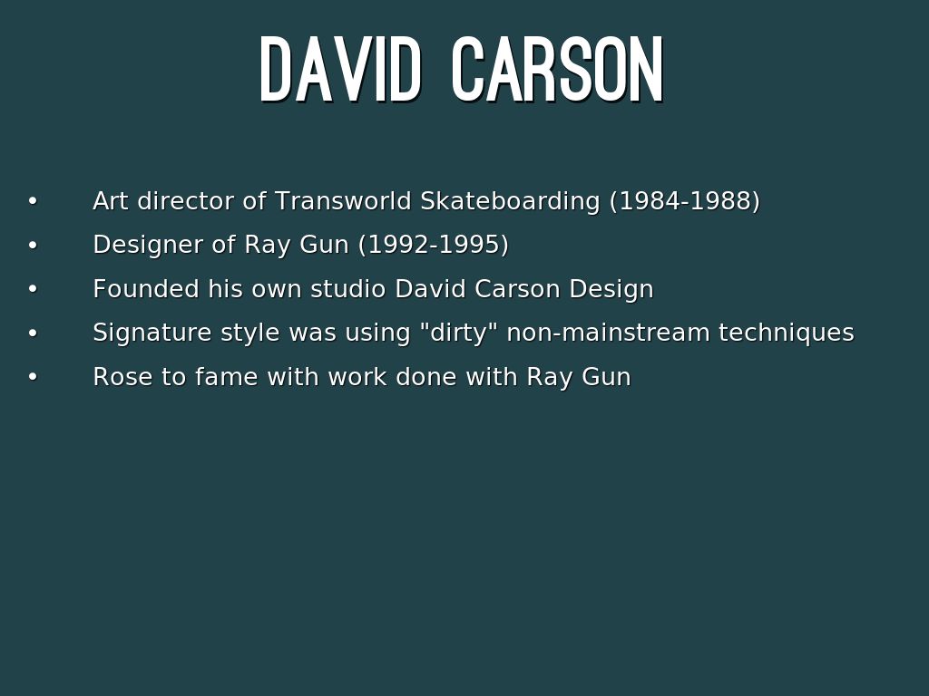 A presentation about the artists of the 1990s that greatly shaped the formation of field of design typography present day.
