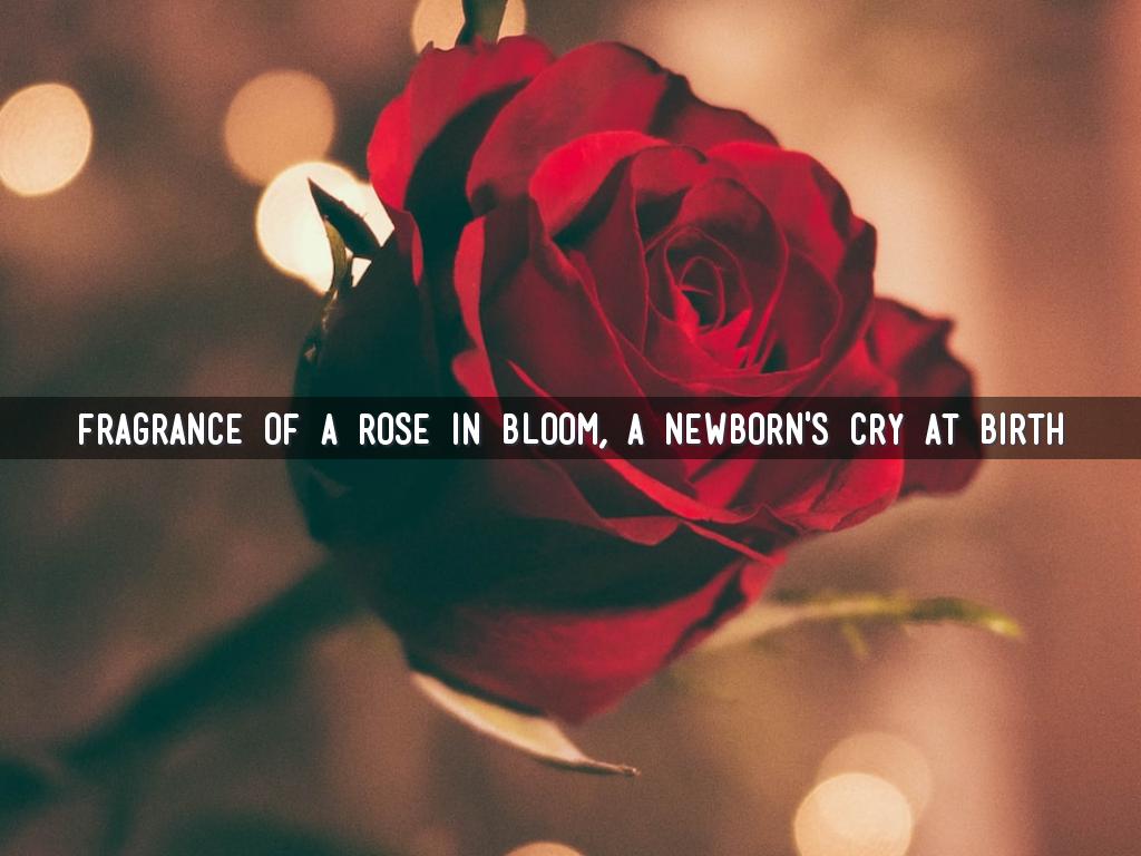 Fragrance of a rose in bloom, a newborn's cry at birth
