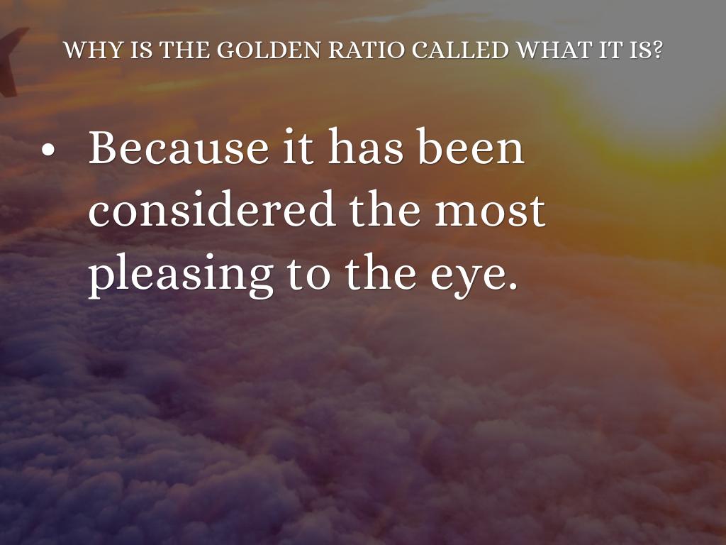 WHY IS THE GOLDEN RATIO CALLED WHAT IT IS?