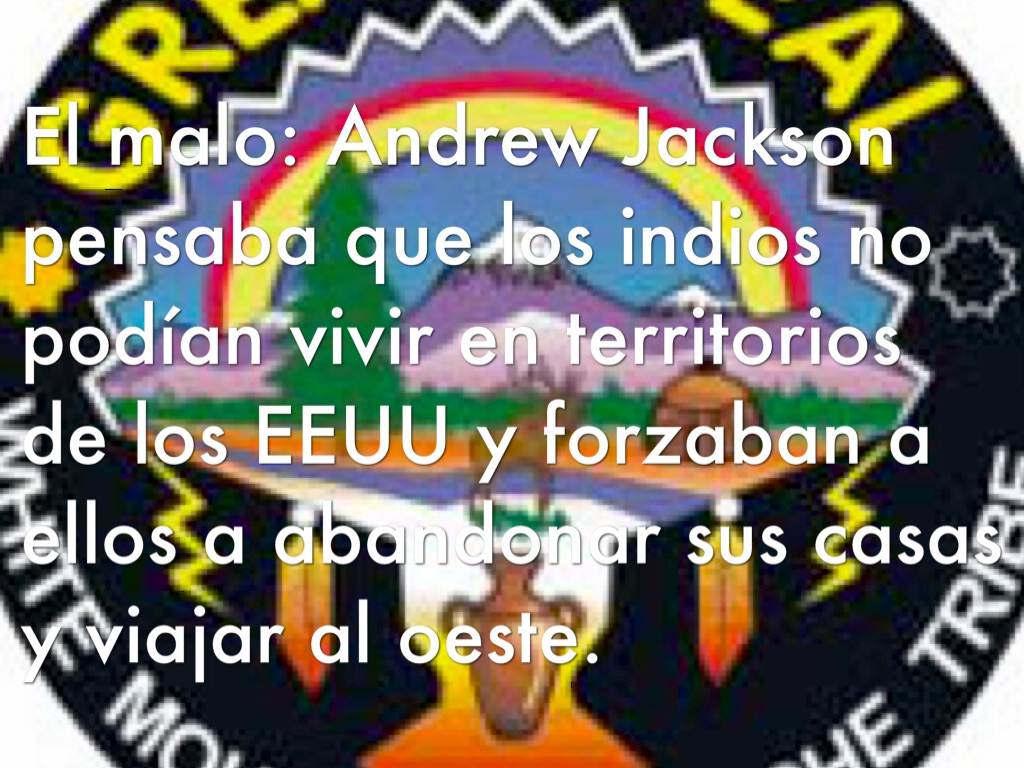 El malo: Andrew Jackson pensaba que los indios no podían vivir en territorios de los EEUU y forzaban a ellos a abandonar sus casas y viajar al oeste.