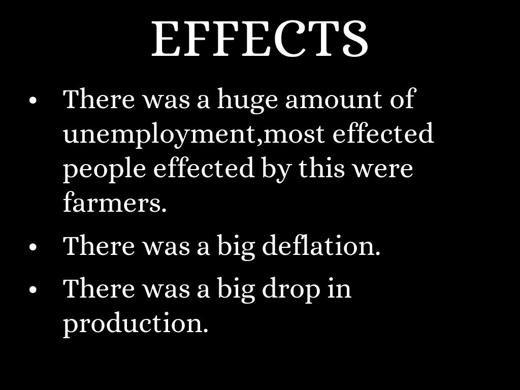 There was a huge amount of unemployment,most effected people effected by this were farmers.