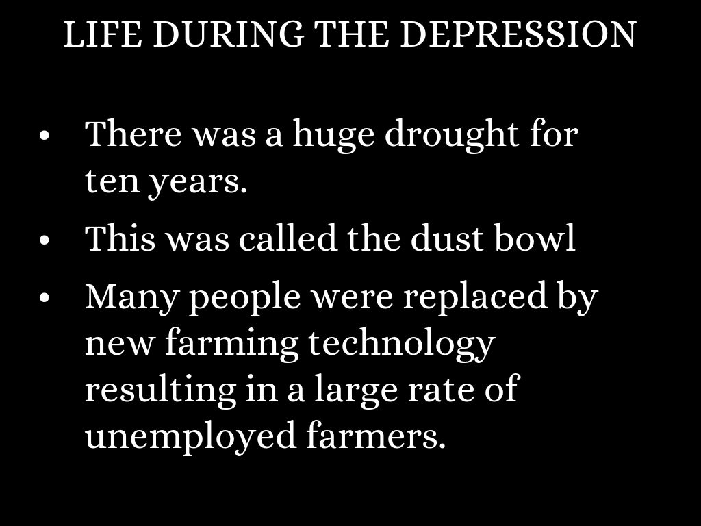 Many people were replaced by new farming technology resulting in a large rate of unemployed farmers.