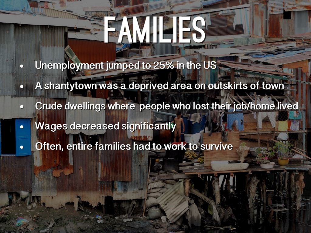 A shantytown was a deprived area on outskirts of town