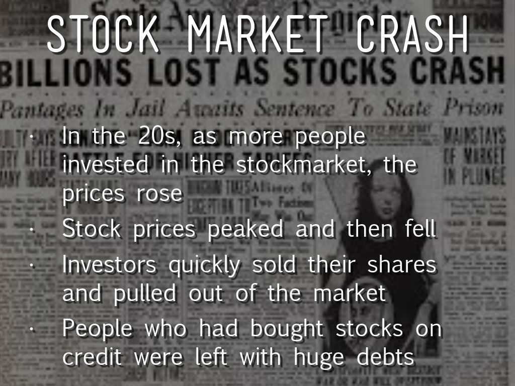 • In the 20s, as more people invested in the stockmarket, the prices rose