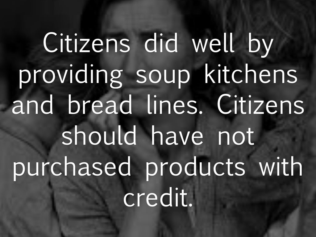 Citizens did well by providing soup kitchens and bread lines. Citizens should have not purchased products with credit.
