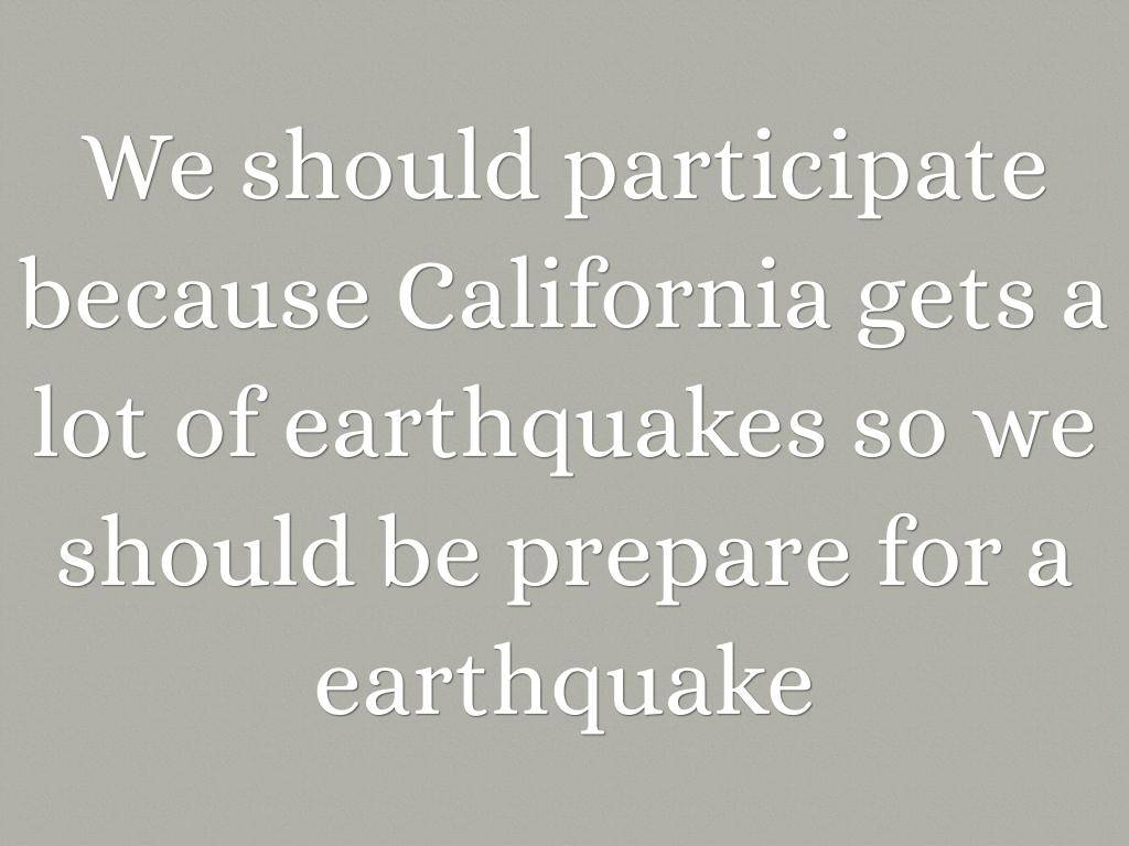 We should participate because California gets a lot of earthquakes so we should be prepare for a earthquake