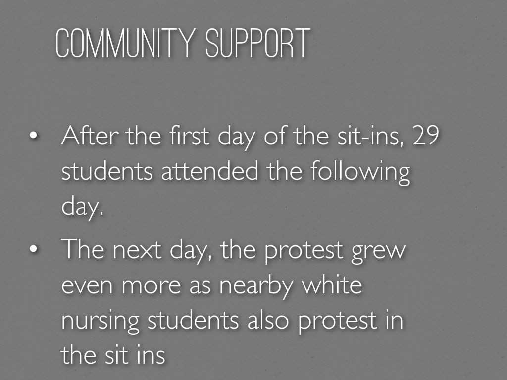 - The next day, the protest grew even more as nearby white nursing students also protest in the sit ins