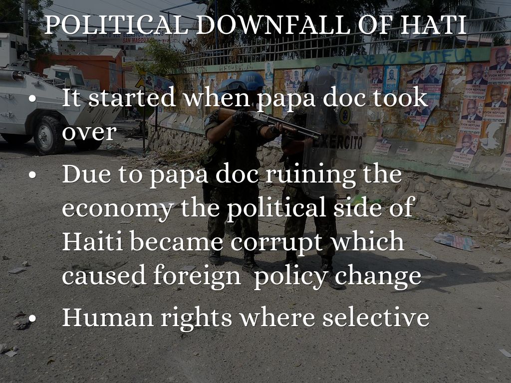 Due to papa doc ruining the economy the political side of Haiti became corrupt which caused foreign policy change.
