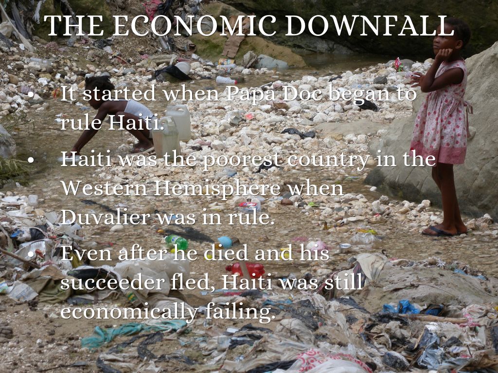 Even after Papa Doc died and his succeeder (Bebe doc) fled, Haiti was still economically failing.