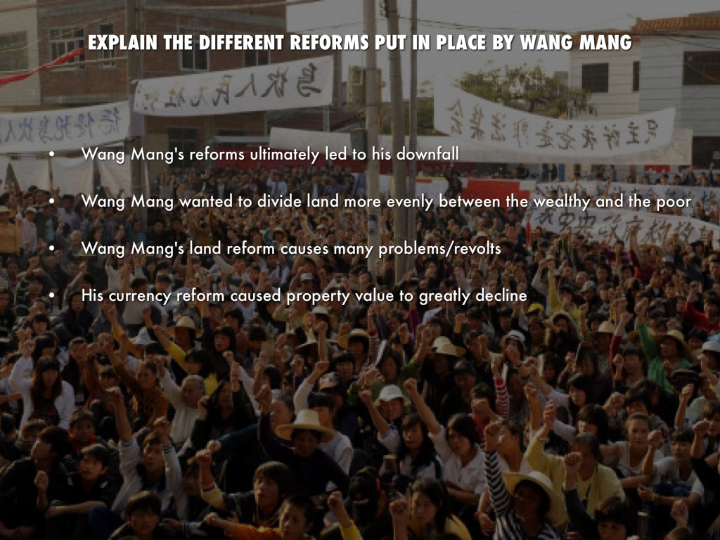 EXPLAIN THE DIFFERENT REFORMS PUT IN PLACE BY WANG MANG
