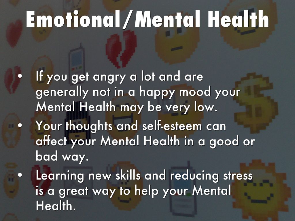 If you get angry a lot and are generally not in a happy mood your Mental Health may be very low.