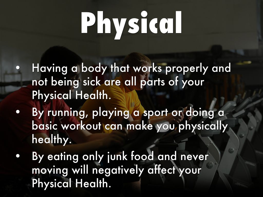 By eating only junk food and never moving will negatively affect your Physical Health.