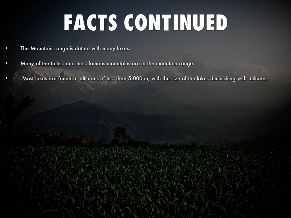 •  Most lakes are found at altitudes of less than 5,000 m, with the size of the lakes diminishing with altitude.