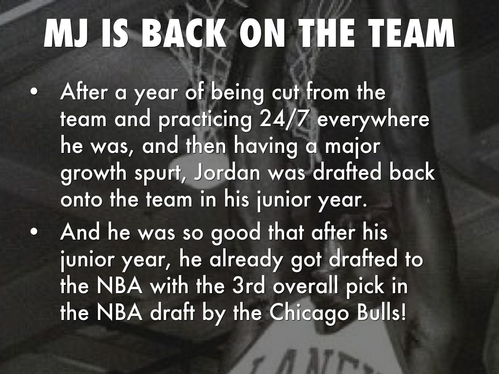 After a year of being cut from the team and practicing 24/7 everywhere he was, and then having a major growth spurt, Jordan was drafted back onto the team in his junior year.