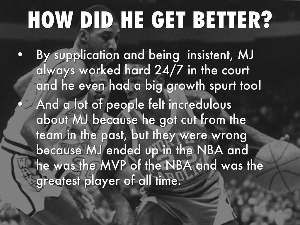 By supplication and being insistent, MJ always worked hard 24/7 in the court and he even had a big growth spurt too!