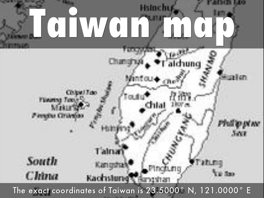 The exact coordinates of Taiwan is 23.5000° N, 121.0000° E